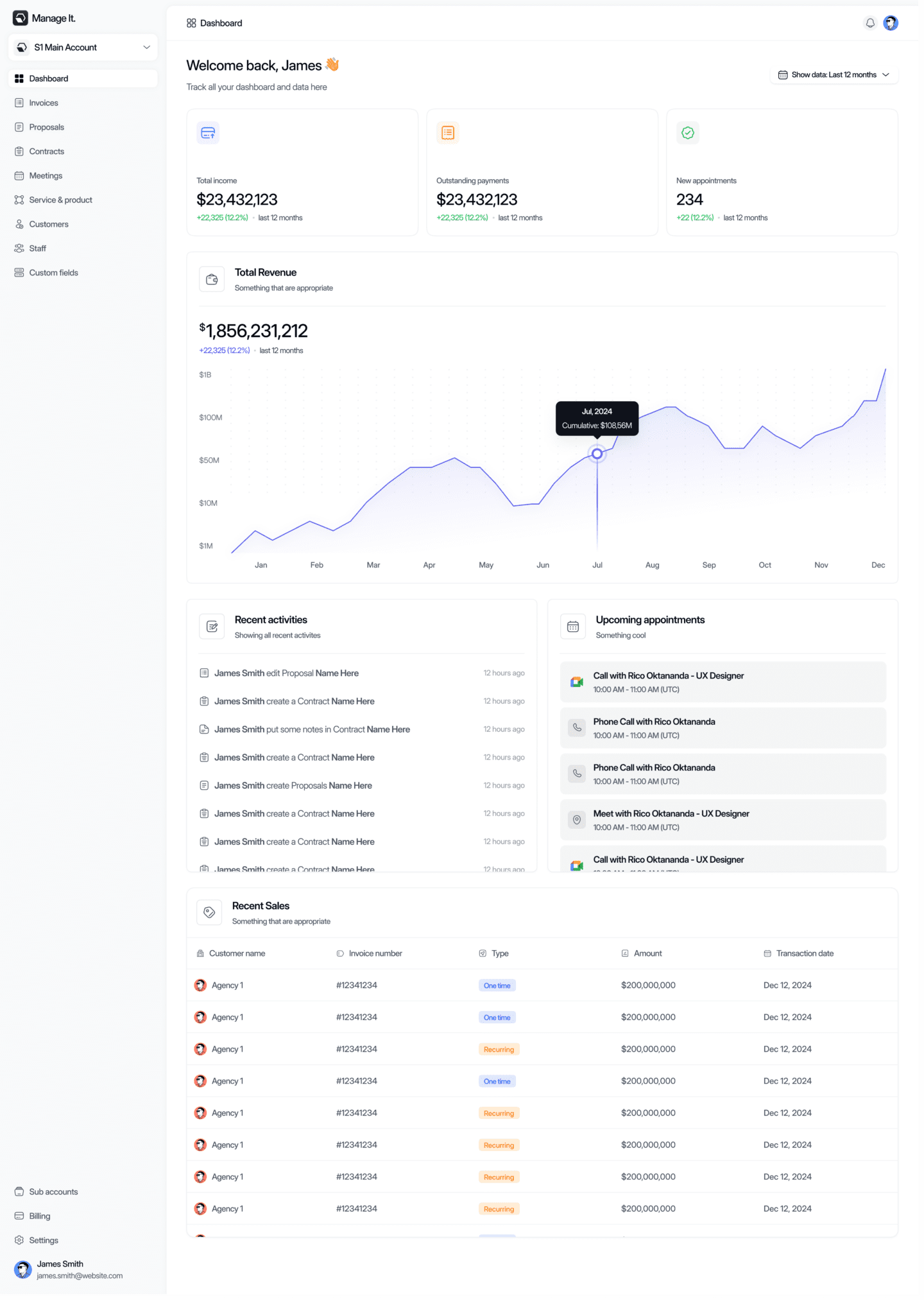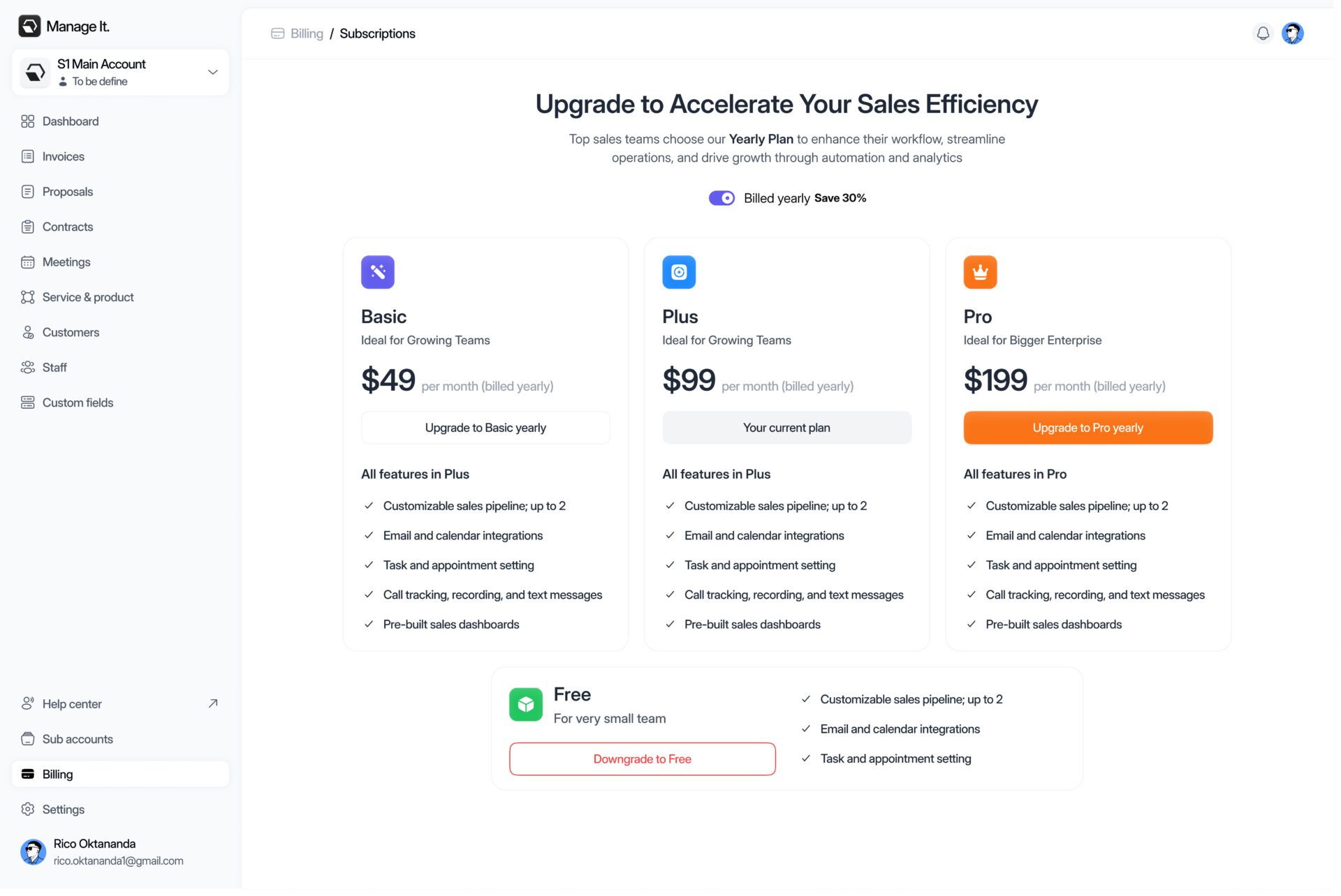 We’ve built an incredibly robust API for our app. We’re working on getting direct integrations with Zapier, SureTriggers and Pabbly, but rest assured, you can easily send an API request and control everything on Manage It.