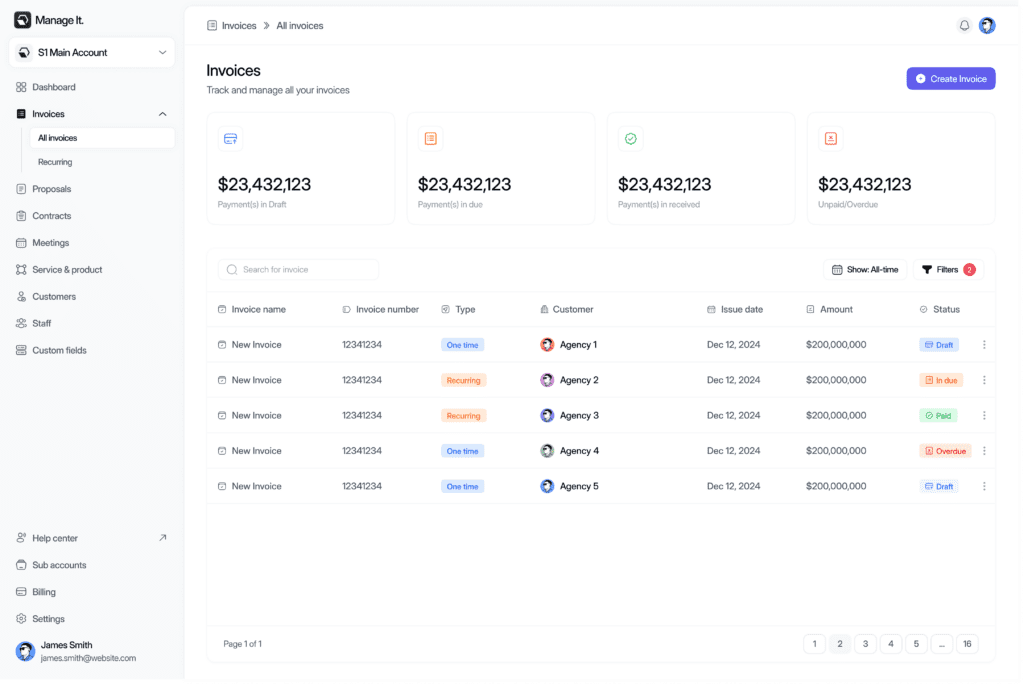 Navigation will be more streamlined, making it easier to access important sections like contacts, invoices, and automation workflows without unnecessary steps. Improved visual hierarchy and updated design elements will enhance readability and ensure that key information stands out.